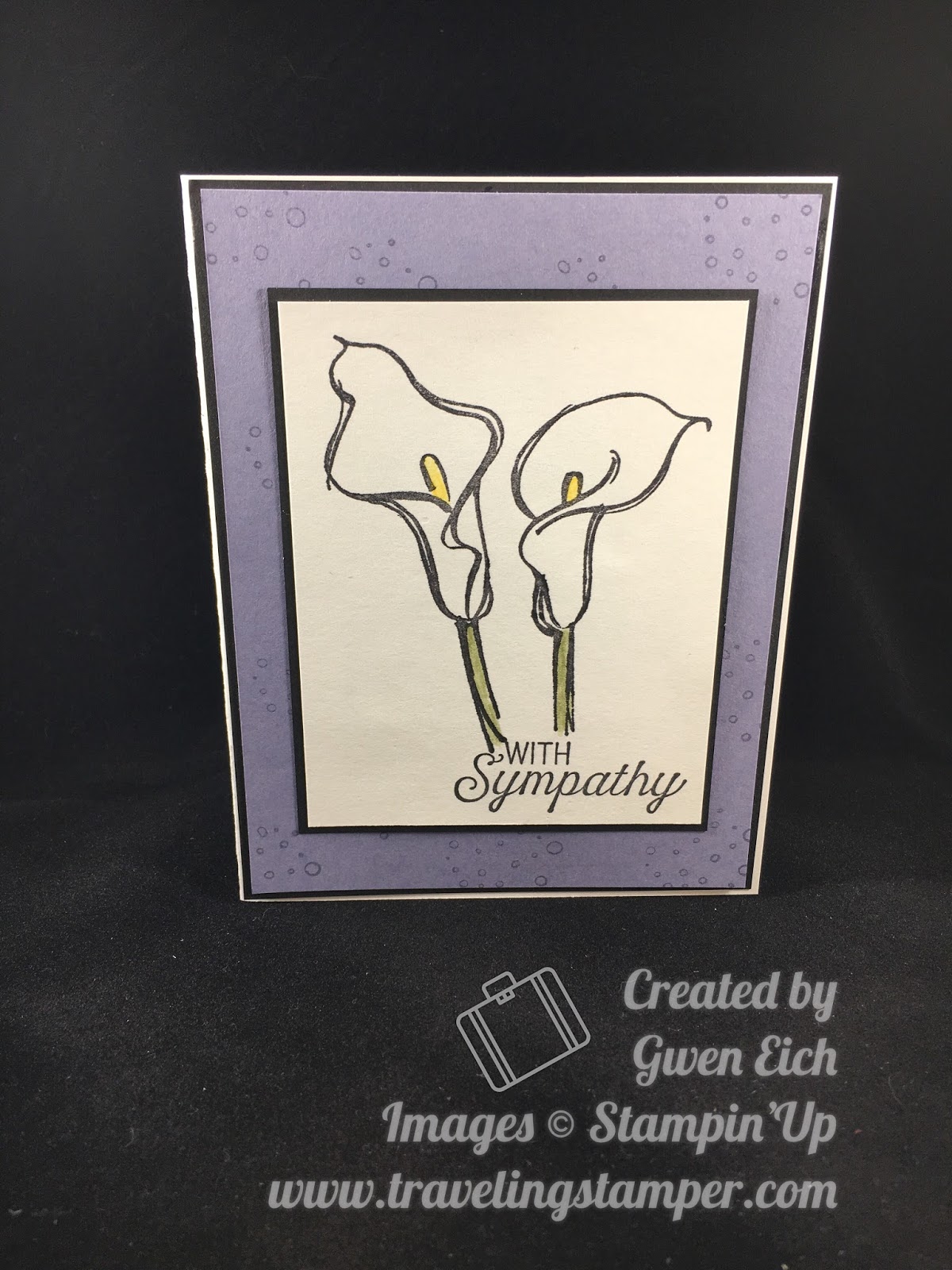 Here we are back again with another CASE-ing Tuesday. I needed a sympathy card and with it being almost Easter I decided to use the Calla Lillies in the set. You could change the wording and make it an Easter card also. That is another awesome idea to use when stamping. Make up a couple cards and when you need them just add the sentiment at the time. That way you have a card for every occasion.