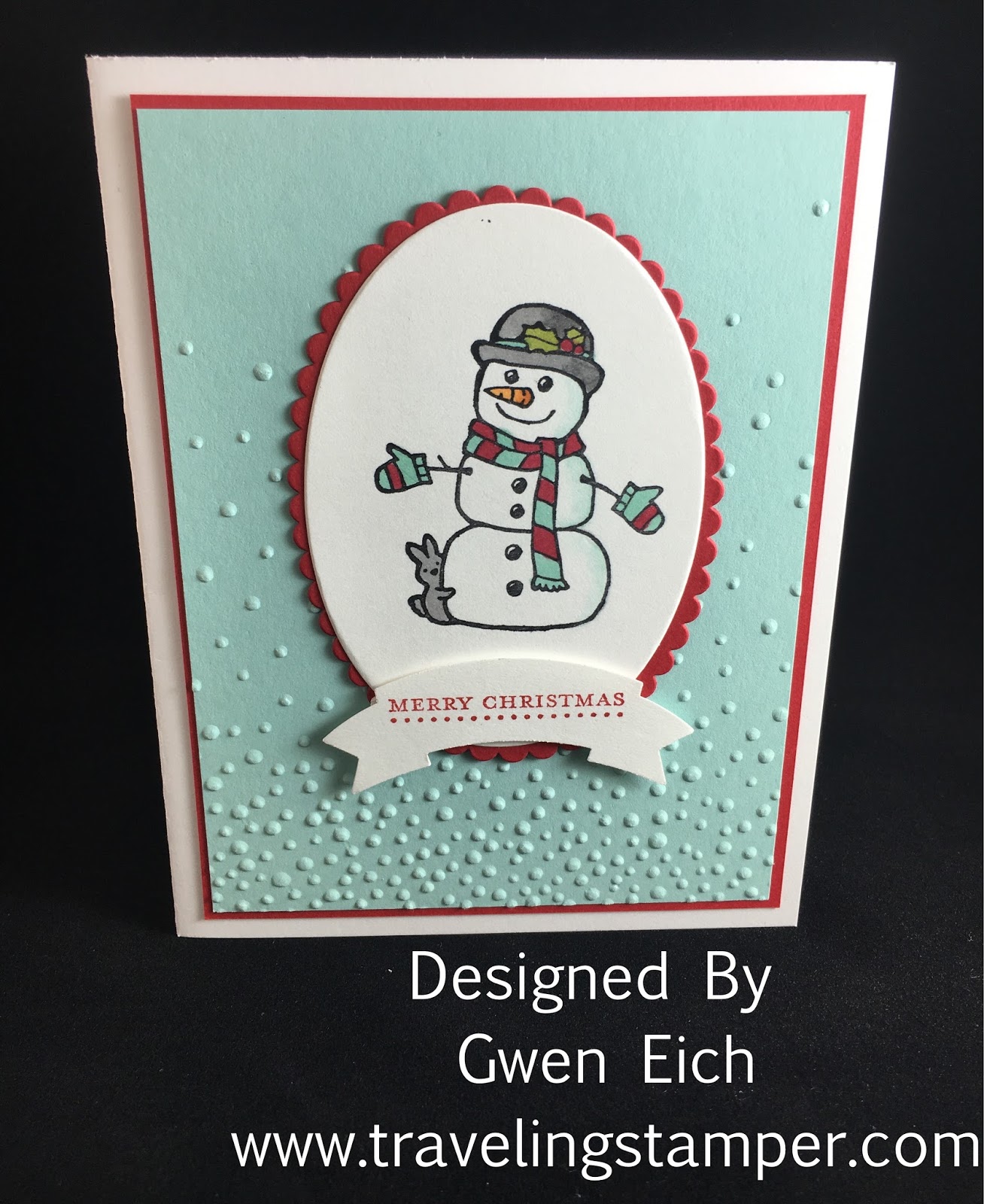 I did this in the non-traditional Christmas colors. I love Christmas colors but sometimes I like to try different colors. The colors I used on this card were pool party and real red. What are your favorite color combinations for Christmas?