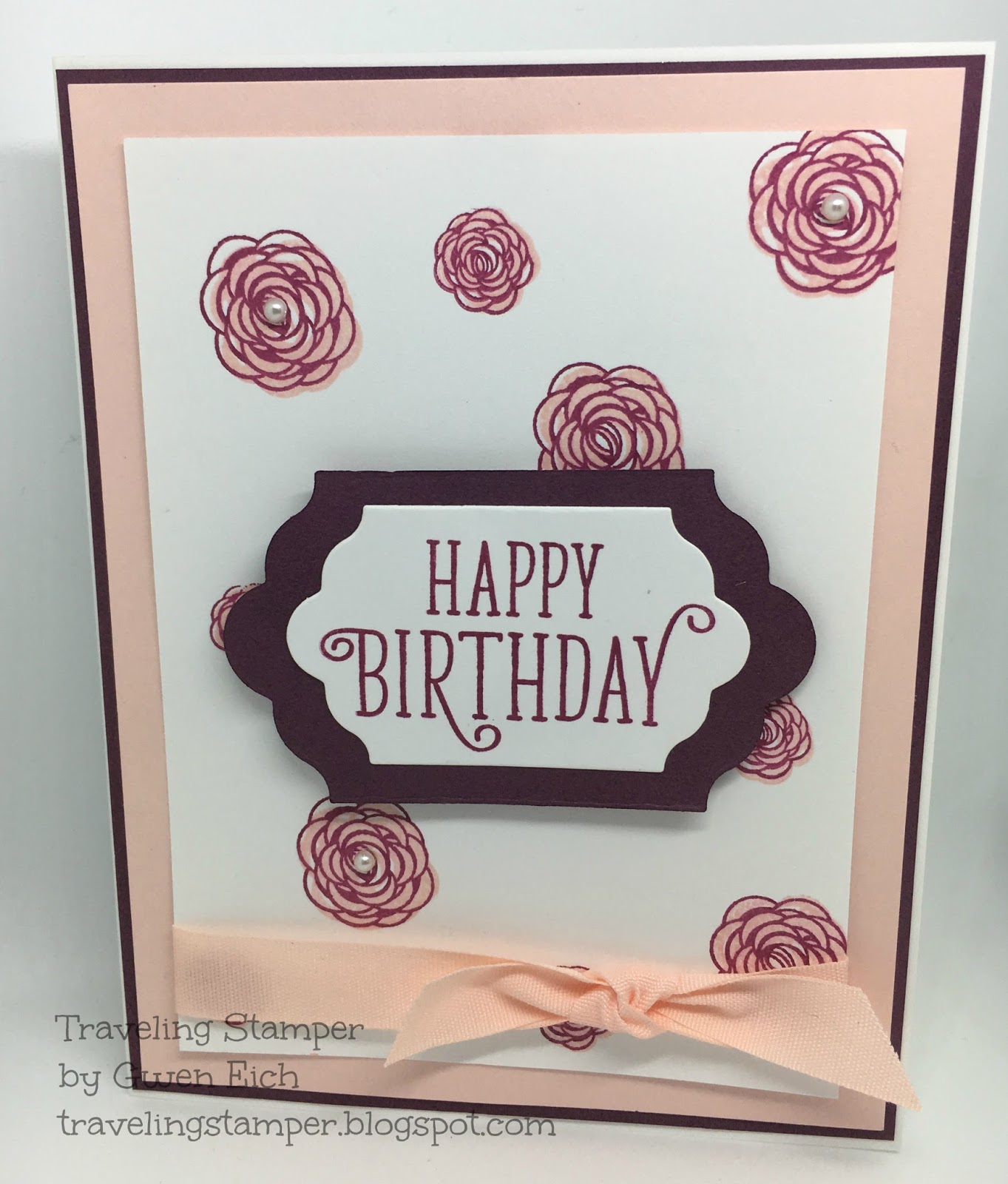 Another quick and easy card with a few of the new colors. I used Fresh fig along with powder pink. I just love the new pink ribbon. The flowers are from Happy Birthday Gorgeous and Happy Birthday is from the same set. I used the dies from the Layer die cuts.