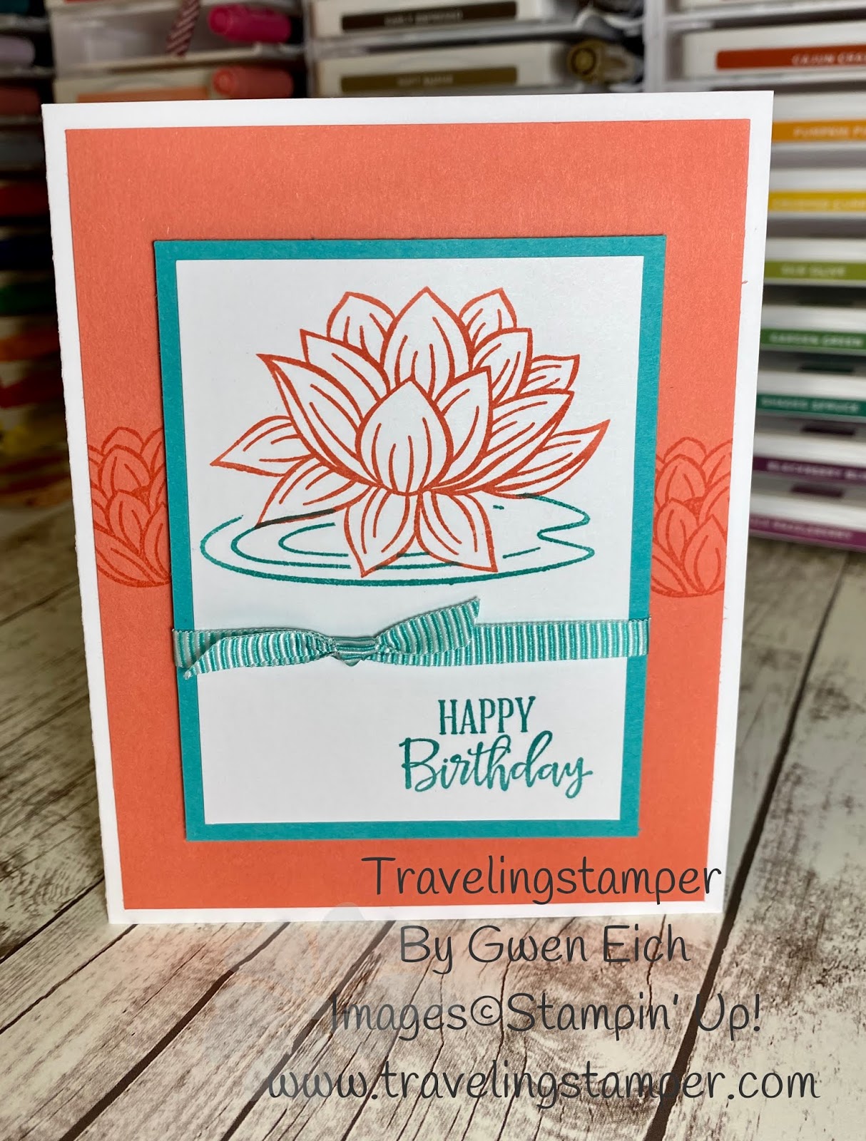 This card was made with the so pretty Lovely Lily Pad stamp set. You can get this stamp FREE right now during Sale-a-Bration. With a $50.00 order, you can earn it for free. This offer only good until March 31st.