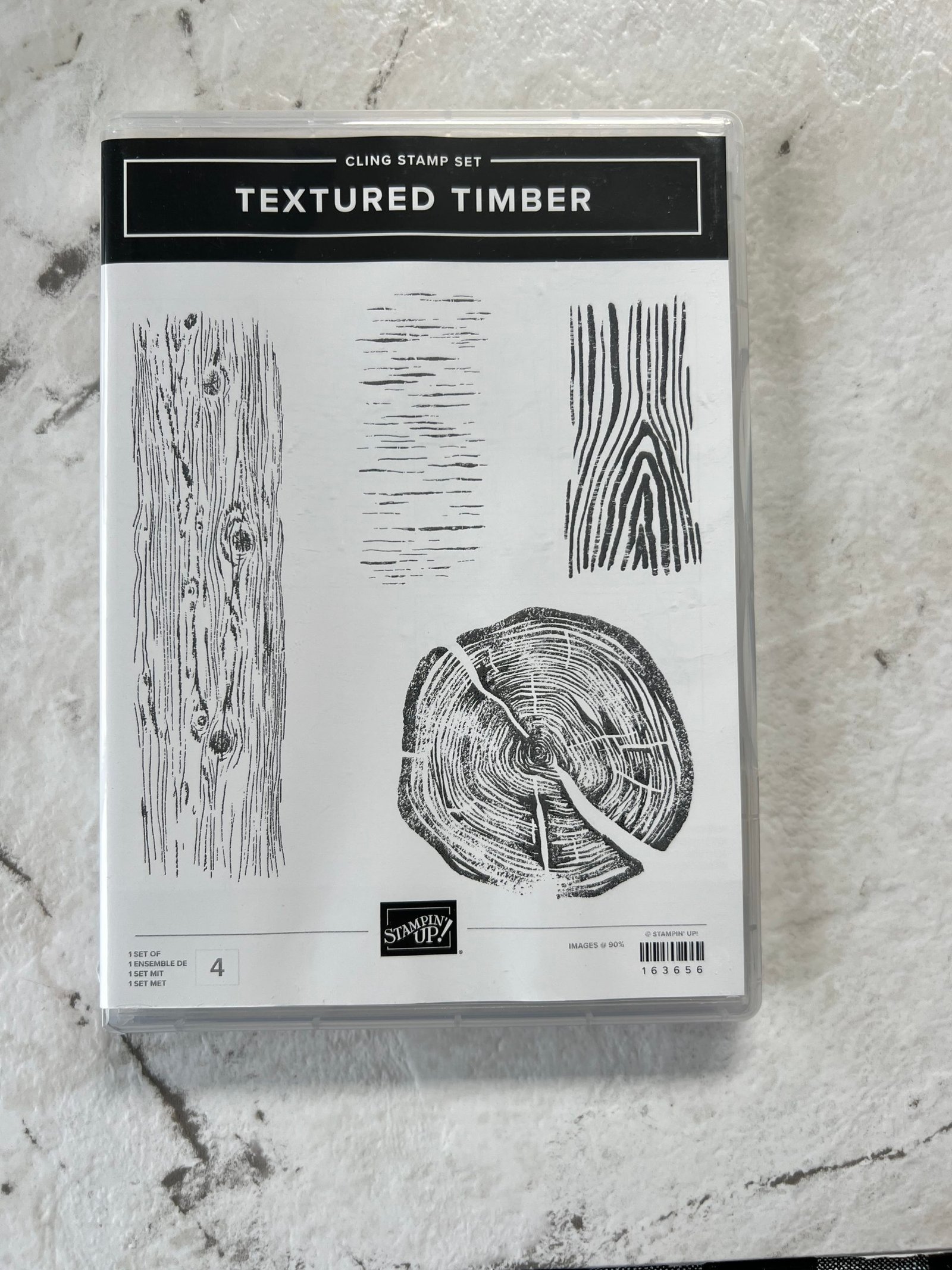 Brand New Stampin’ Up! Textured Timber – cling, retired stamp set.