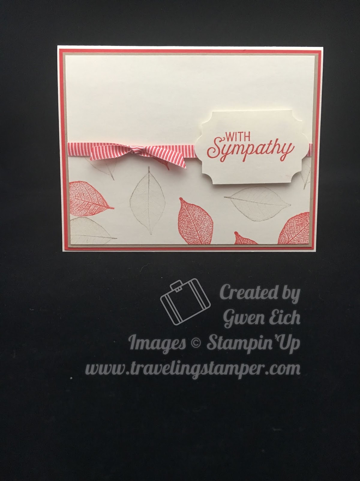 Today I used the new set,  Natures Roots.  It is such a lovely card and you can use it for masculine cards, birthday cards, or as I did here sympathy cards.  Don’t ask me why I used Poppy Parade for a sympathy card but I just felt it went really well with the Crumb Cake.  What do you think?