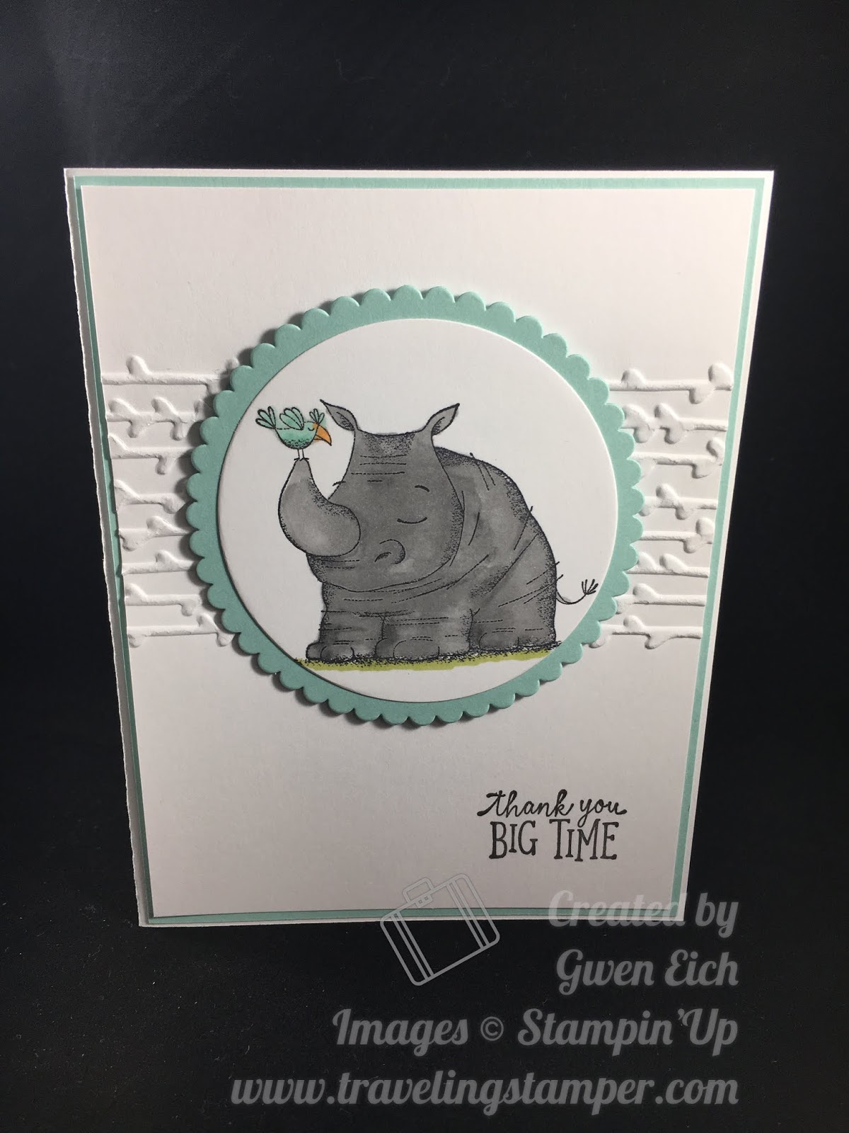 Isn’t this little (big) guy the cutest.  Oh, my he is so stinking cute.  This is one of the new stamp sets that Stampin’ Up! released recently.  As a Stampin’ Up! demonstrator, this set was one that we could pre-order after On Stage.  This was the first set that I bought.  I didn’t want to show it until you could order it.  Hate when you fall in love with something but can’t have it lol.  So I decided to wait until the new catalog was released.  If you would like a catalog and have not received one yet please let me know and I will definitely get one sent out to you.