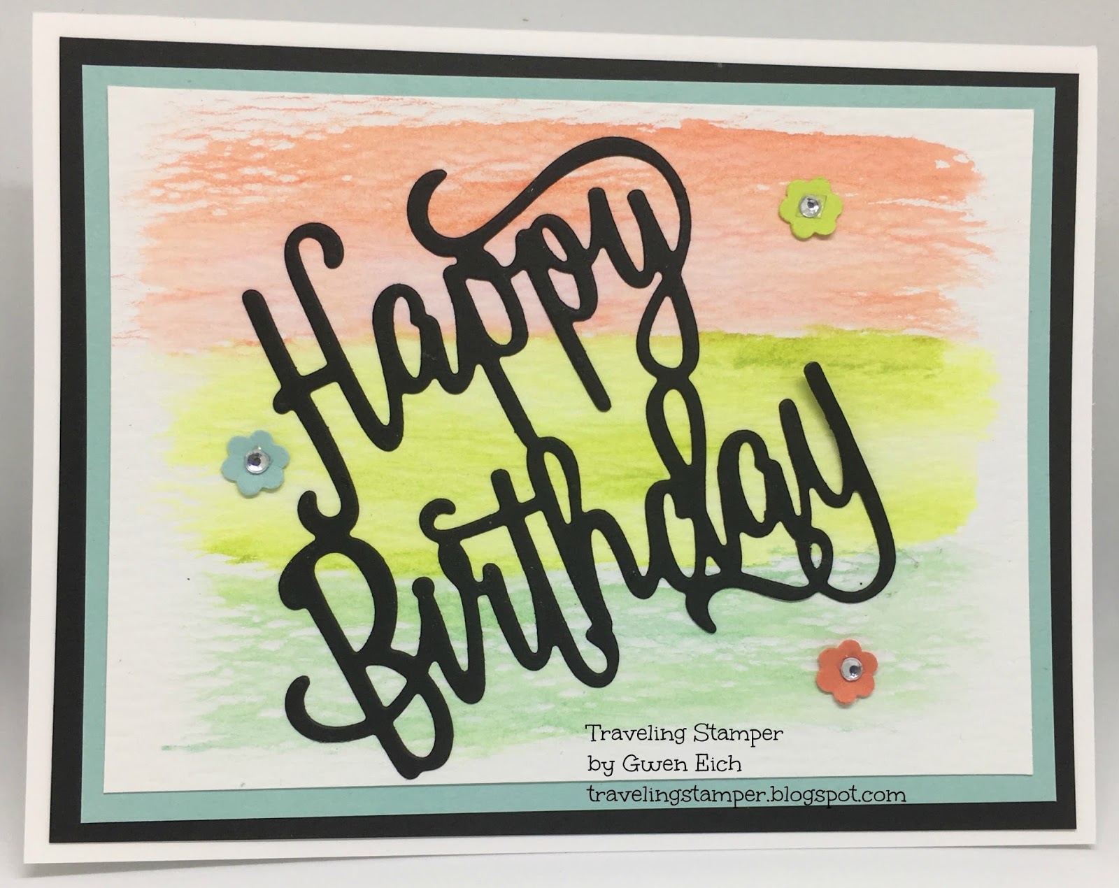 We got back to Iowa today. It is SO good to be home. I am only home for a couple of days then I am back to Minnesota. Pretty sure my vehicles are going to know the way by themselves. Today I made a card using an aqua painter and ink pads. I just love this technique as there is no rhyme or reason to the painting. Each one comes out so unique and different. Also, you can’t really mess this technique up. So head on over to my online my Stampin up web page and check out the supplies to make this card. While you’re there also look around at all the great stamps sets that Stampin Up has to offer.